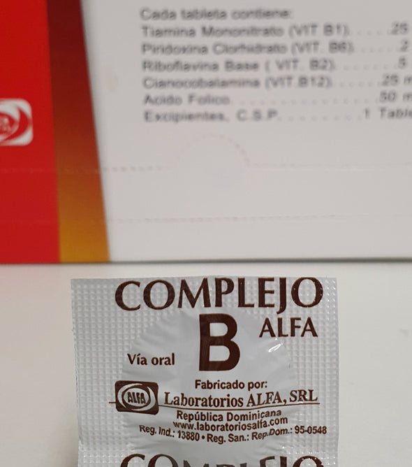 Complejo-B Alfa Dispensador de 250 unidades (PRECIO POR UNIDAD €0,95) Complex-B Alfa Dispenser van 250 stuks (PRIJS PER EENHEID € 0,95)   Complejo-B Alfa en Tabletas es un suplemento multivitamínico y puede usarse para tratar...