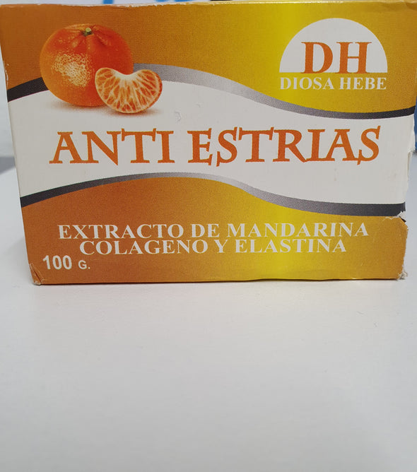 Con extracto de mandarina, colageno y elastina.  Met mandarijnextract, collageen en elastine.   jabon anti estrias (100g)marca diosa hebe Anti-striae zeep 100g-diosa Hebe